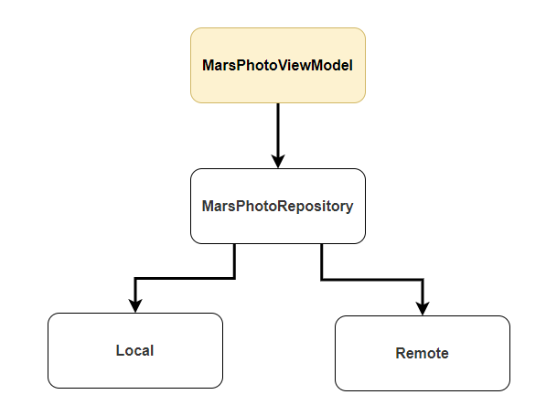 - MarsPhotoViewModel : Repository에 의존성을 가지고 사용자 인터페이스 (UI)와 인터렉션을 한다.