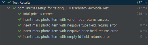 이러한 방식으로 ViewModel 테스트 시 의존성 주입받는 Repository에서 문제가 발생할 수 있다는 것을 방지하고 테스트 단위의 독립성을 확보한다.